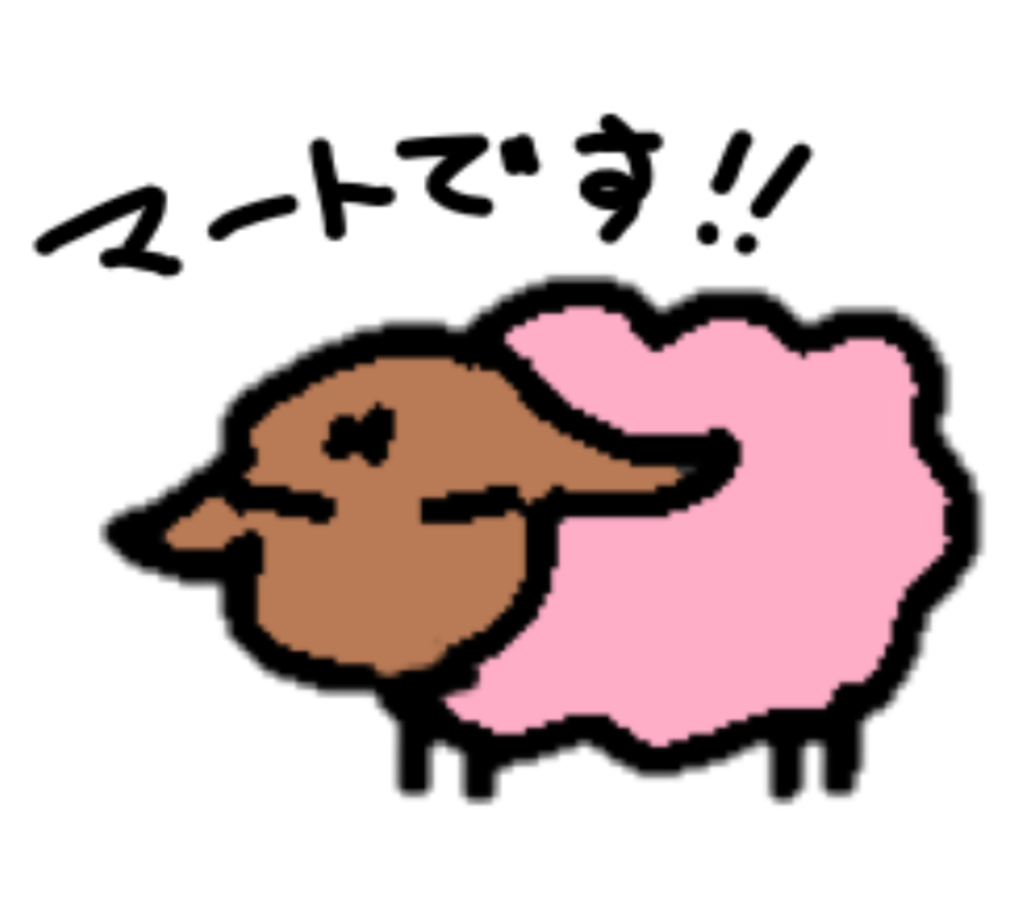 羊のマートさんです!マートさんは目をつぶりながら話します。こんなような絵を描いてグッズにしてます。